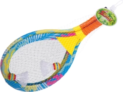 Ta barvit komplet je idealen za vrt, park in plažo. Lahka zasnova loparjev z udobnim ročajem omogoča enostavno upravljanje, zato je primerna za otroke in začetnike. LED diode v okvirju loparjev dajejo igri privlačen učinek in omogočajo varno nadaljevanje tudi po mraku.