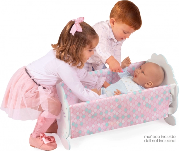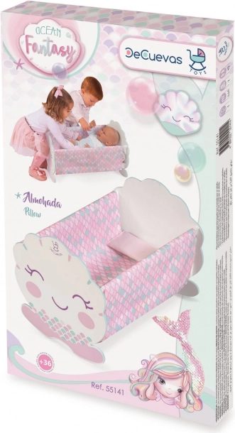 Prisrčna lesena zibelka za punčke iz kolekcije OCEAN FANTASY očara z nežnimi pastelnimi barvami in motivom male morske vile. Ponuja kakovostno izdelavo, stabilno konstrukcijo in španski dizajn. Priložen je rožnat vzglavnik, ki poskrbi za udobje punčke. Idealni dodatek v dekliško sobico za kreativno igro in skrb za punčke.
