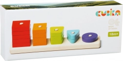 Lesena sestavljanka CUBIKA ponuja zabaven način za spoznavanje oblik in barv. Na trden kvadraten podstavek s količki otroci natikajo 15 barvitih perforiranih kosov – kroge, trikotnike, kvadrate in druge preproste geometrijske oblike – ter pri tem naravno vadijo koordinacijo oko–roka in osredotočenost.