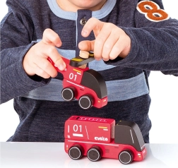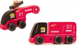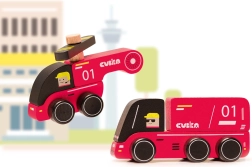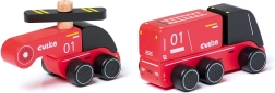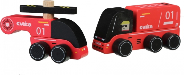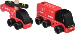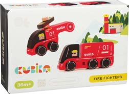 Otrokom privoščite ustvarjalno igro z lesenim kompletom CUBIKA gasilci. Komplet sestavljata gasilski avto in helikopter, izdelana iz najkakovostnejšega javorjevega in bukovega lesa, lakirana z barvami na vodni osnovi brez vonja. Zaradi zaobljenih robov in skrbne izdelave odlično ležita tudi v majhnih rokah ter spodbujata senzomotoriko, logično razmišljanje in kreativnost.