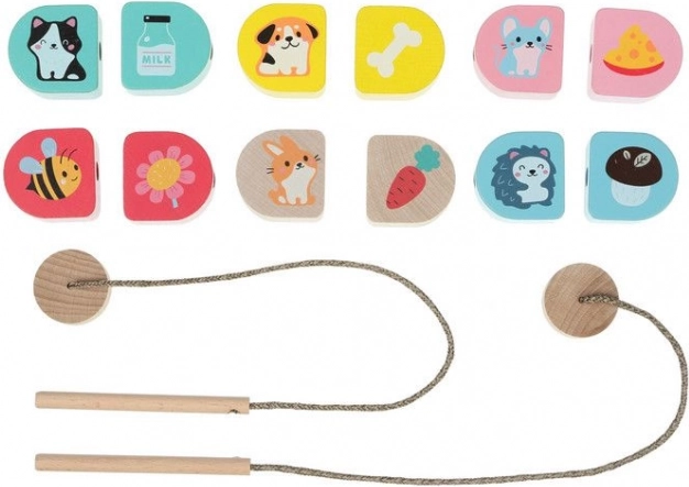 Odkrijte zabavno izobraževalno igro, ki razvija veščine otrok od treh let naprej. Nizalni set Cubika Kaj jemo prinaša barvite lesene delčke z živalmi in njihovimi najljubšimi dobrotami. Naloga je najti prave pare in jih nanizati na vrvico – idealno za trening fine motorike, potrpežljivosti in logičnega razmišljanja.