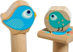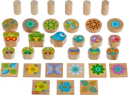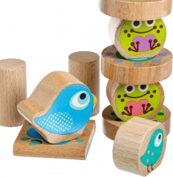 Kakovosten les, gladka obdelava in zaobljeni robovi so idealni za majhne roke. Barviti motivi živalic spodbujajo prepoznavanje oblik in barv.