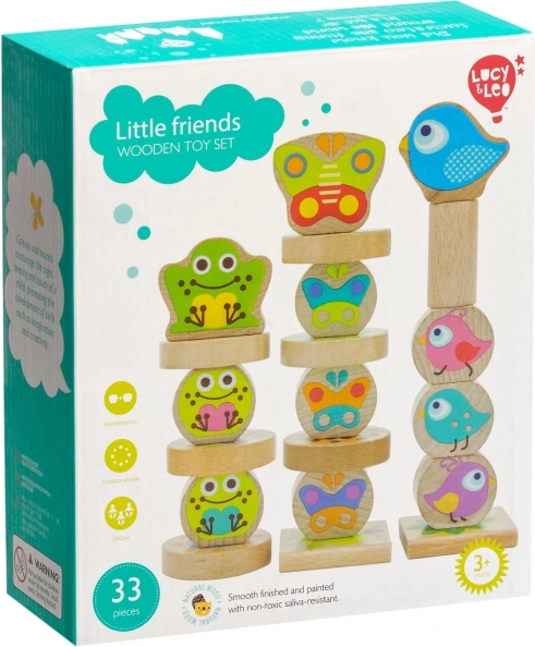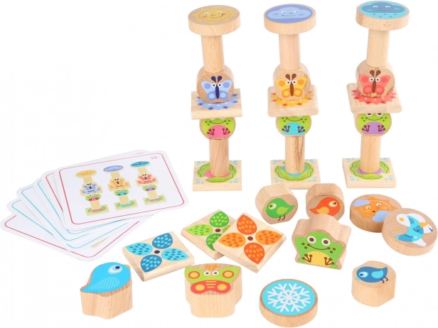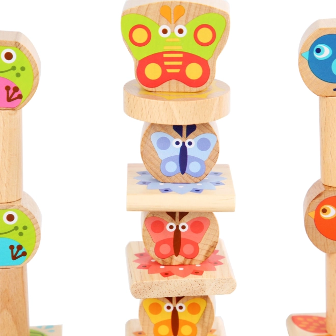 Odkrijte zabavno leseno balančno igro za otroke z motivi žabic, ptičkov in metuljev. Set vsebuje 33 delov in obojestranske karte s predlogami, ki razvijajo fino motoriko, koordinacijo oko–roka, potrpežljivost in kreativnost. Kakovostni leseni bloki z zaobljenimi robovi so varni za majhne otroške roke, shranite pa jih lahko v praktičen lanen vrečke za na pot.