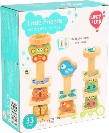Ta ustvarjalni balančni set Lucy & Leo otrokom prinaša veselje ob odkrivanju oblik, barv in preprostih principov ravnotežja. Deli z veselimi živalskimi motivi vabijo k sestavljanju po kartah s predlogami ali k prosti igri, ki krepi domišljijo.