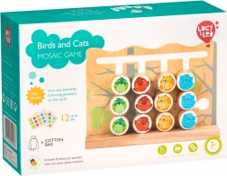 Veliki, enostavno oprijemljivi čepki z motivi ptic in mačk motivirajo otroke k ponavljajoči se igri ter vadbi fine motorike in barv.