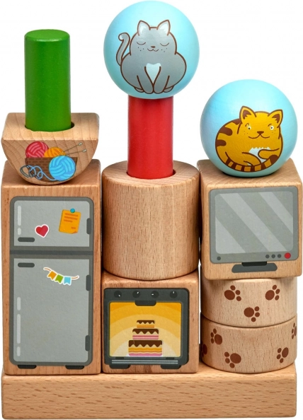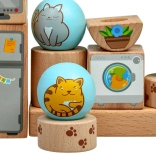 - Čvrsti leseni deli z veselimi ilustracijami mačk in gospodinjskih predmetov