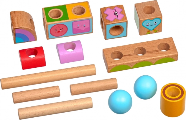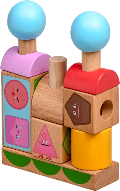 Lesena sestavljanka Oblike in čustva združuje igrivo učenje in zabavo. Otroci po karticah sestavljajo geometrijske oblike z veselimi obrazki na osnovo s količki, s čimer krepijo koordinacijske spretnosti, vizualno zaznavanje in logiko. Kakovostna lesena izdelava in žive barve spodbujajo pozornost in ustvarjalnost.