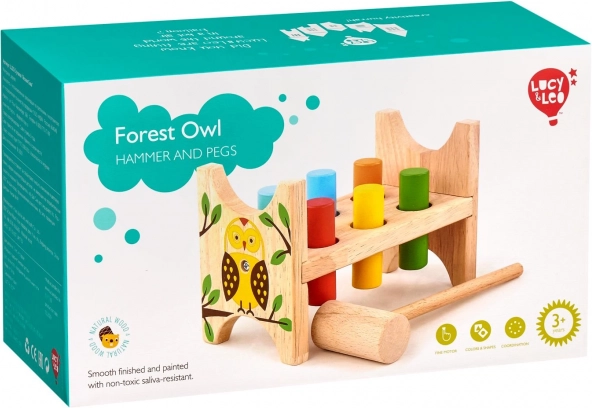 Zabavna in trpežna lesena tolkalna klopca z motivom sovice znamke Lucy & Leo razvija fino motoriko, koordinacijo oko–roka in vključuje kladivce ter barvne zatiče. Ko vse zatiče zabijete, preprosto stojalo obrnite in igra se lahko začne znova.