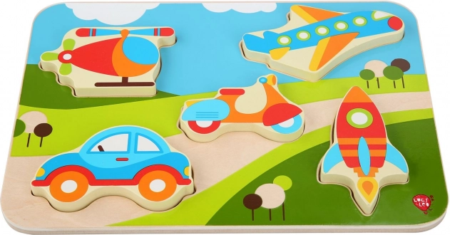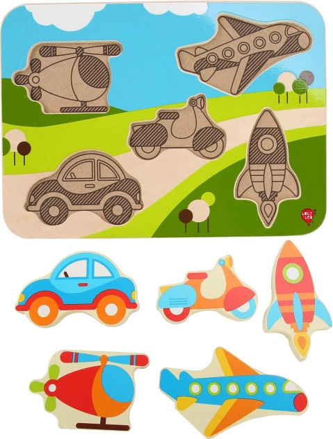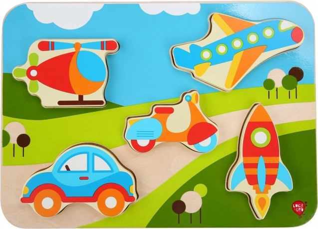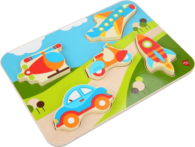 Odkrijte zabavne lesene sestavljanke z motivi vozil, ki razvijajo fino motoriko, koordinacijo oko–roka in prepoznavanje oblik. Veliki, barviti koščki so otrokom prijetni za držanje in jih je enostavno vstaviti v prave izreze. Idealna izbira za prve sestavljanke za male navdušence nad avtomobili, letali in drugimi prevoznimi sredstvi.