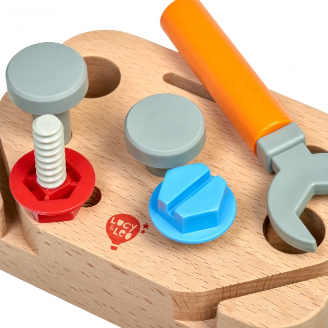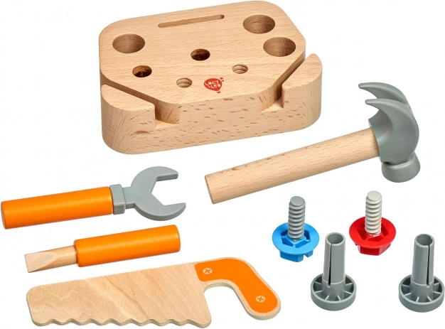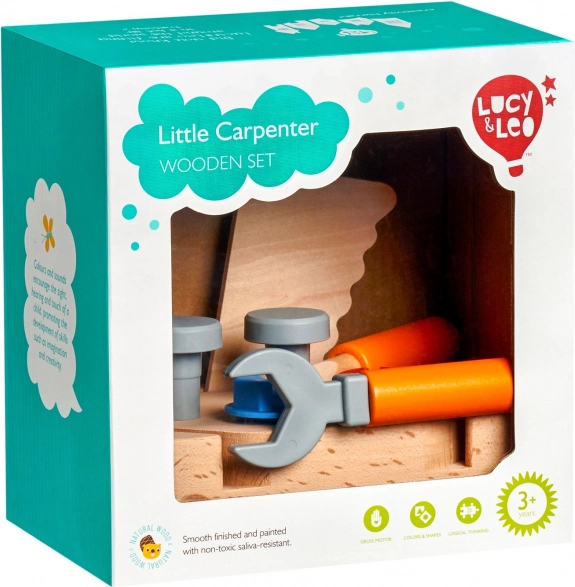 Odkrijte ustvarjalni svet ročnih spretnosti z otroškim kompletom orodja Lucy & Leo »Mali mizar«. Ta kakovosten leseni komplet z 9 deli vsebuje stojalo in osnovna orodja – žago, kladivo, ključ in izvijač – dopolnjena z vijaki in žeblji. Igrača je izdelana iz varnega lesa in plastike z gladko površinsko obdelavo ter odlično razvija fino motoriko, koordinacijo oko–roka in kreativno razmišljanje.