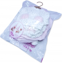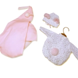 Ta očarljiv set združuje prisrčno oblačilo za dojenčka–punčko in mehko visečo zibelko, ki služi kot prijetno gnezdece za počitek punčke. Zahvaljujoč kakovostni izdelavi in prijetnim tkaninam je idealen za vsakodnevno igro, razvoj domišljije in fine motorike.