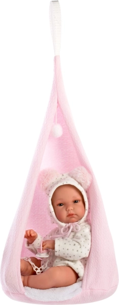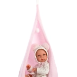 Udobna tekstilna zibelka z zanko za obešanje ponuja punčki prijeten kotiček za počitek in igri doda nove možnosti.