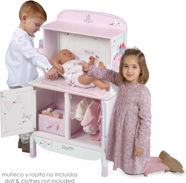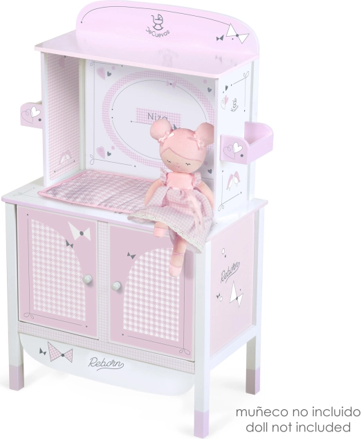 Zaradi natančnega španskega dizajna in skrbno izbranih materialov omara deluje lahkotno in čisto. Praktične mere zagotavljajo stabilnost in dovolj prostora za vse potrebščine za nego punčke do dolžine 45 cm.