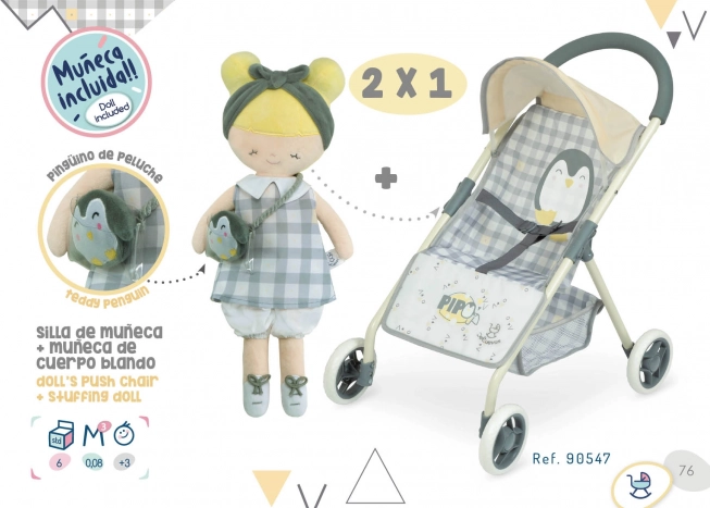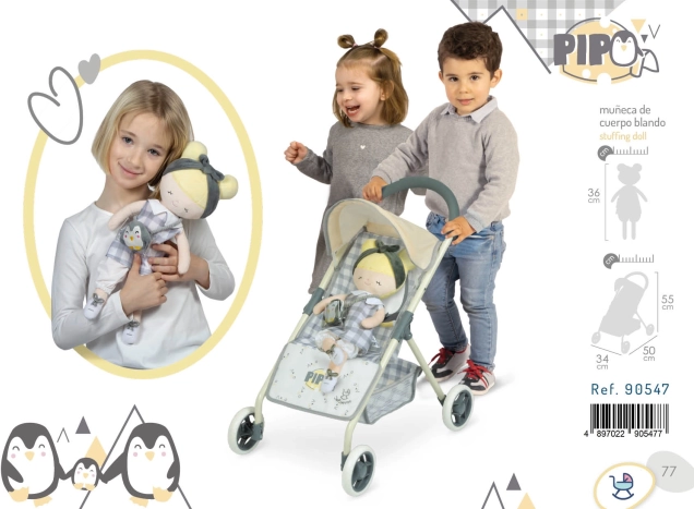 DeCuevas Športni voziček za punčke s plišasto punčko PIPO 2022 je del nove kolekcije za leto 2022, ki prinaša kakovostne in stilne dodatke za bodoče gospodinje. Ta voziček je značilen po svojem elegantnem španskem dizajnu in natančni dodelavi. Enostavno ga je upravljati, kar boste cenili tako med igro kot tudi pri shranjevanju.