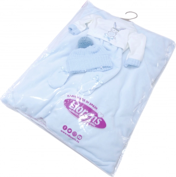 Oblačilo za punčko iz kolekcije New Born je idealno za punčke velikosti 35-36 cm. Ta prikupen komplet oblačil vključuje 3 dele in blazinico, ki jo lahko uporabite kot podlogo. Izdelano je v Španiji, embalaža vključuje plastično ali kartonasto obešalo. Primerno za otroke od 3. leta starosti.
