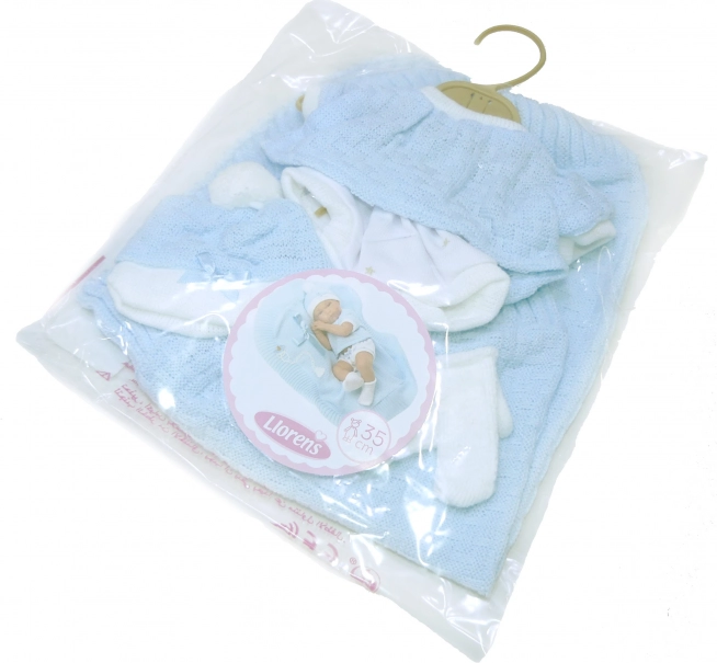 Komplet vsebuje zgornji del, klobuček, nogavice in odejico, ki skupaj tvorijo popoln videz vaše lutke.