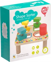 Plošča na stabilnih nožicah ima štiri barvno uokvirjene odprtine, ki se ujemajo z barvami posameznih koščkov. Komplet je idealen za samostojno igro ali skupno raziskovanje s starši ter je odlična lesena izobraževalna igrača za predšolske otroke.