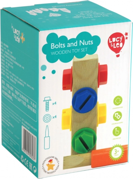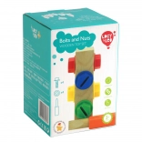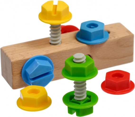 Odkrijte zabaven izobraževalni set za male tehnike: lesen kvader z navoji ter barvni plastični vijaki z maticami in lesenim izvijačem. Igrača razvija fino motoriko, logično mišljenje, potrpežljivost in prepoznavanje barv ter je odlična Montessori pripomoček za vsakodnevno igro.