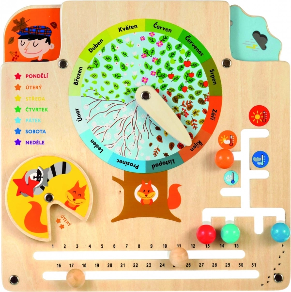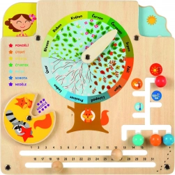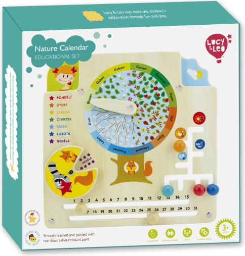 Leseni koledar narave LUCY & LEO je idealen pripomoček za učenje skozi igro. Na sredini plošče je listnato sadno drevo s kazalcem za 12 mesecev, zahvaljujoč kateremu si otroci zlahka povežejo zimo s snegom, pomlad s cvetovi, poletje s sadjem in jesen z odpadlim listjem. Hkrati se učijo prepoznavati dneve v tednu, število dni v mesecu, vreme, temperaturo in primerno oblačilo za različne razmere.