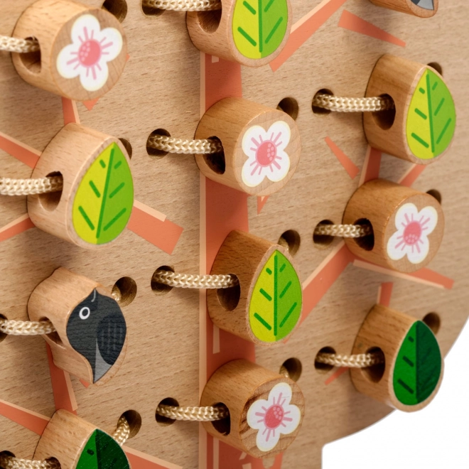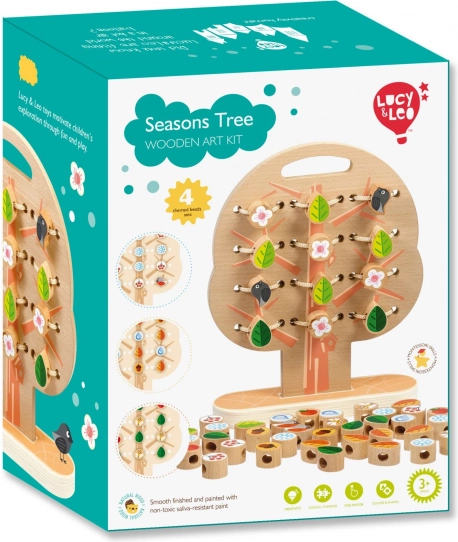 Odkrijte ustvarjalno montessori igračo Lucy & Leo leseno prevezovalno drevo, ki razvija fino motoriko, koordinacijske sposobnosti in kreativnost. Otroci s pomočjo vrvic in lesenih delčkov „oblečejo“ drevo v spomladno, poletno, jesensko in zimsko podobo ter se na igriv način učijo barv in oblik.