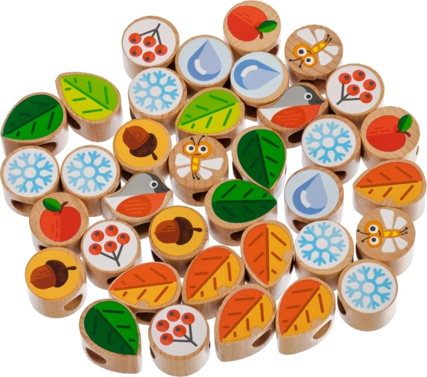 Igrača je navdihnjena z montessori pristopi – razvija logično mišljenje, potrpežljivost, domišljijo in podpira samostojno igro. S temo letnih časov si otroci urijo tudi razvrščanje in razumevanje povezav.
