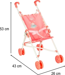 Zložljiv dizajn - Voziček je mogoče enostavno zložiti v kompaktne dimenzije, kar olajša prenašanje in shranjevanje. Ljubek motiv na sedežu in varnostni pas dodajata igri na verodostojnosti. Voziček ne prinaša le veselja, temveč tudi razvija domišljijo, empatijo in socialne veščine otroka.