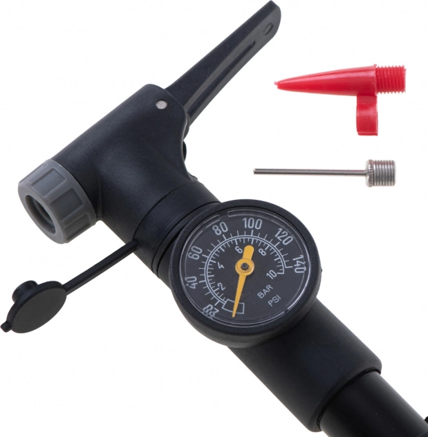 Opremljena je z več nastavki za različne tipe ventilov, vključno z ventili za športne žoge in bazensko opremo. Zahvaljujoč natančnemu manometru boste takoj vedeli pravi tlak glede na vaše potrebe.