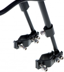 Robustne objemke in vijačni spoji zagotavljajo zanesljivo pritrditev. Prtljažnik zlahka namestite in snamete, ko ga želite prestaviti na drugo kolo.