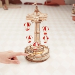 Uživajte v čarobnosti zabaviščnega parka doma s to podrobno 3D sestavljanko glasbene skrinjice – padalski vrtiljak. Model ponuja motorski pogon, LED osvetlitev, ključno/tapno upravljanje gibanja in zvoka ter predvaja romantično melodijo Falling Flower. Čaka vas 184 natančno izrezanih kosov, zahtevna težavnost in impresiven rezultat, ki ustvari vzdušje zahvaljujoč prosojnim oknom in trem svetlobnim točkam.