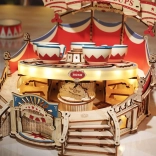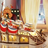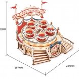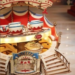 Sestavite čarobno glasbeno skrinjico z vrtiljakom s skodelicami, navdihnjeno s cirkuškim šotorom in zabaviščnimi parki. Model ponuja motorski pogon, LED osvetlitev, na dotik upravljanje gibanja in zvoka ter predvaja romantično melodijo Wind and Moon. Čaka vas izziv z 280 natančno izrezanimi deli in težko zahtevnostjo – idealno za navdušene graditelje in ljubitelje dizajnerskih modelov.