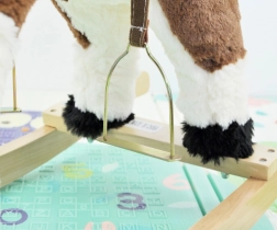 Ta čarobni zibajoči konjiček je narejen iz mehkega in kakovostnega pliša, kar zagotavlja prijeten dotik. Odlična lastnost so lesene gugalne letve in trdni leseni ročaji, ki zagotavljajo stabilnost in varnost med igro. Konjiček je opremljen s sedlom s stremeni in uzdo, kar še bolj približa avtentičnost jahanja konja.