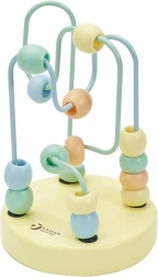 Na kovinskih palicah so čudovite lesene kroglice, ki jih otroci lahko poljubno premikajo, s čimer vadijo natančnost gibov prstov in rok.