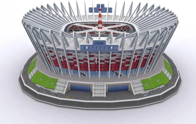 Realističen komplet 3D sestavljanke Nacionalnega stadiona v Varšavi prinaša ure zabave in odličen rezultat. Deli iz približno 3 mm debele pene, prevlečene z laminiranim potiskanim papirjem, natančno prilegajo in se preprosto sestavljajo. Sestavljanje zlahka opravite po priloženih navodilih brez uporabe lepila in škarij – predrezane dele preprosto izlomite iz lista.