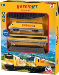 Modelni vlak RegioJet podjetja Student Agency je idealna izbira za vse ljubitelje železnic. S to originalno setom, ki vsebuje rumeno lokomotivo in rumen vagon, se lahko podate na nepozabne pustolovščine. Komplet vključuje 12 ukrivljenih in 6 ravnih tirov, ki omogočajo postavitev tirov z dimenzijami do 147 x 121 cm. Tiri se lahko preprosto razporedijo tako, da tvorijo dva kroga za realističen promet.