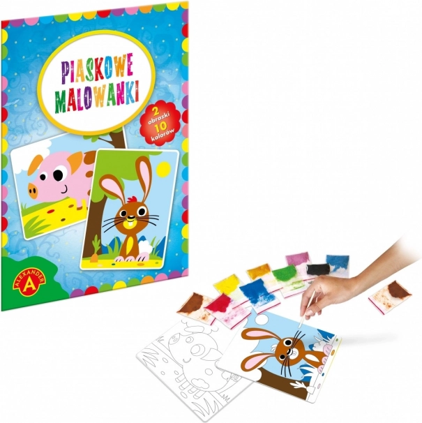 Umetniška igra z risanjem s peskom poteka tako, da postopoma odkrivamo posamezne izrezane dele slike, da se razkrije lepljiva površina izbranega fragmenta. Vsak odkritek se posuje s peskom v barvi, ki ustreza vzorcu na sliki, navedenemu v navodilih in na škatli.