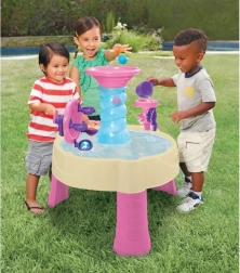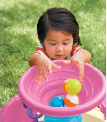 LITTLE TIKES Spiralin' Seas je zabaven vodni park, ki otroke popelje v svet eksperimentiranja z vodo. Zahvaljujoč rožnato–bež dizajnu, spiralnemu stolpu in vodnemu kolu otroci opazujejo pretakanje, vrtenje in škropljenje, hkrati pa razvijajo fino motoriko, koordinacijo oko–roka in socialne veščine pri skupni igri.