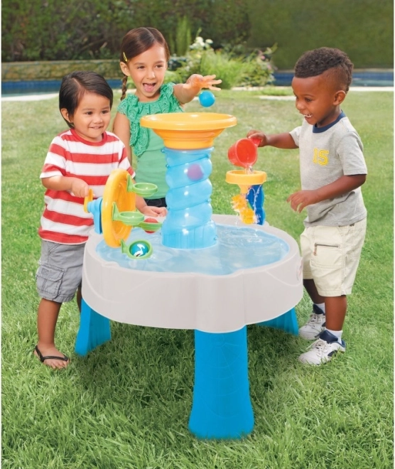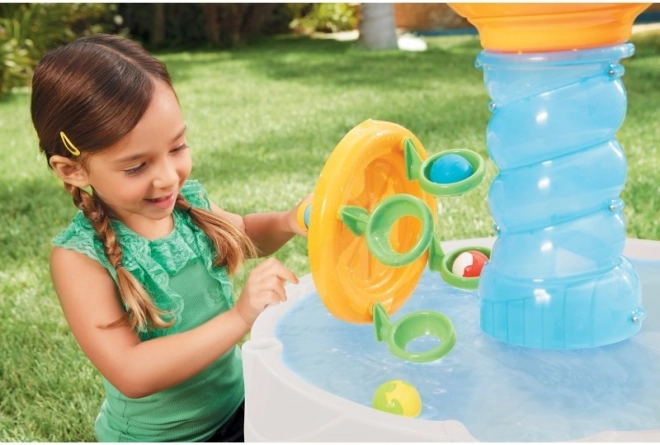 Spiralna fontanaFantastična zabava z vodo in žogicami. Žogice se spuščajo v ogromno spiralo. Igramo se z njimi pri več dejavnostih. Na voljo je veliko kolo, ki nam pomaga ujeti žogice iz vode. Igrati se s to igračo je velika zabava.