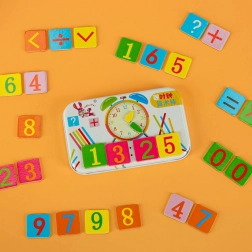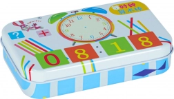 Praktičen izobraževalni komplet, ki otrokom na zabaven način pomaga pri učenju ur in minut ter pri prvih matematičnih operacijah. Zaradi živih barv, magnetnih kartic in kompaktnega kovinskega etuija je idealen za vrtec, šolo in na poti.