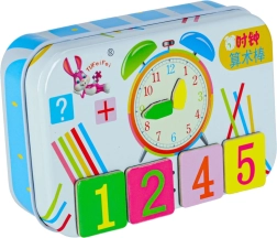 Ta pametna pripomoček povezuje učenje in igro. Na pokrovu kovinske škatlice najdete analogne in digitalne ure, na katere otroci zlahka pritrdijo magnetne številke in zamenljive kazalce. Barvni elementi spodbujajo koncentracijo ter razvijajo logično mišljenje in fino motoriko.