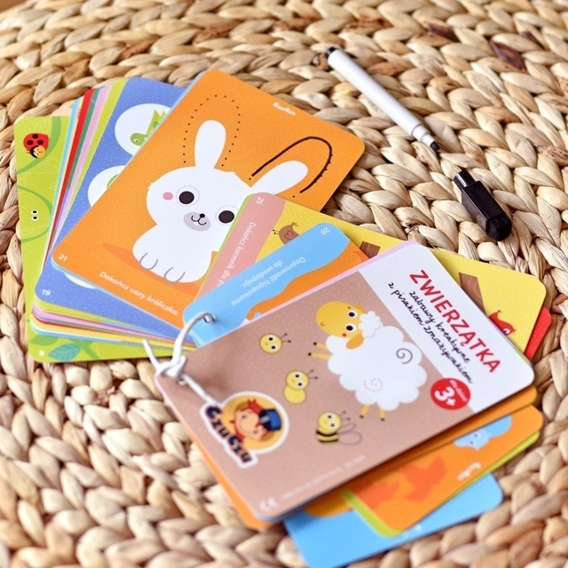 Odkrijte pametno zabavo, ki raste z vašim otrokom. Knjižica z veselimi živalicami ponuja ponovljive naloge in risanje – dovolj je narisati, obrisati in začeti znova. Ilustracije in zahtevnost aktivnosti so prilagojene otrokovi starosti, zato se uči naravno skozi igro.
