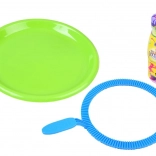 Plastična posodica, obroč in 250 ml kakovostne raztopine TUBAN – odprete in lahko takoj ustvarjate mehurčke.