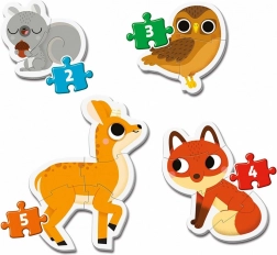 Ta komplet "Moje prve sestavljanke" znamke CLEMENTONI je idealna izbira za prvo spoznavanje otrok s sestavljankami. Vesele ilustracije lisice, jelena, sove in veverice v živih barvah vabijo k sestavljanju ter krepijo zbranost in potrpežljivost.