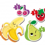 Odkrijte zabavne otroške sestavljanke z motivom sadja, ki vsebujejo štiri uganke z 2, 3, 4 in 5 koščki. Veliki in trdni koščki debeline 3 mm so idealni za majhne otroške ročice, lahko jih je prijeti in podpirajo prvo sestavljanje, fino motoriko ter prostorsko orientacijo. Popolna izbira za otroke od 2 let dalje.