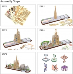 Ta 3D sestavljanka prinese v vaš dom vzdušje Barcelone, vključno s slovito SAGRADA FAMILIA in drugimi arhitekturnimi dragulji. Deli so predrezani, enostavno se izlomijo iz plošče in jih po navodilih gladko sestavite brez uporabe lepila in škarij. Končni model izstopa kot stilski dodatek dnevni sobi, delovni sobi ali otroški sobi.