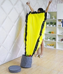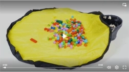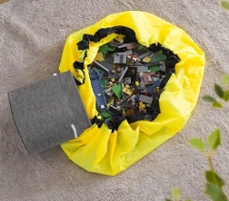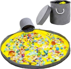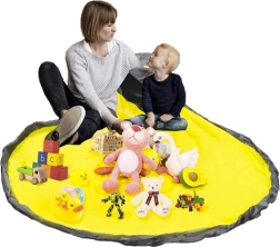 Razgrnite veliko podlogo (Ø 135 cm), pustite otroke, da se igrajo, po koncu pa povlecite za vrvico z nastavkom – igrače bodo v hipu pospravljene v koš.