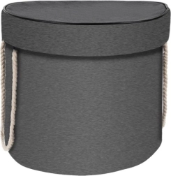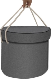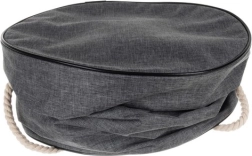 Z udobnimi vrvnimi ročaji koš zlahka prenesete iz sobe v sobo, na teraso ali na piknik. Nežen sivi koš in rumeno‑črna podloga se podata v vsak interier.