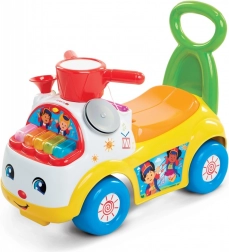 Na sprednji plošči je klaviatura z dvema načinoma: predvajanje 5 veselih koračnic in prosta igra za lastne glasbene poskuse. Praktičen skrit prostor pod sedežem sprejme drobnarije, ki jih mali vozniki želijo imeti vedno pri sebi.