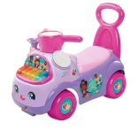 Na sprednjem delu poganjalca so barvite tipke z dvema načinoma: predvajanje 5 veselih pohodnih melodij in prosta glasbena igra, ki spodbuja ustvarjalnost in občutek za ritem. Ne manjka niti skrit predal pod sedežem za drobnarije in priljubljene zaklade.