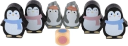Barvna kocka doda napetost in raznolikost – vrzite in postavite pravega pingvina, da platforma ostane v ravnotežju.