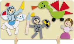 Magnetna tabla in stojala držijo vse koščke na mestu. Otroci si zlahka ustvarijo lastne srednjeveške prizore, ki jih lahko kadarkoli spremenijo.